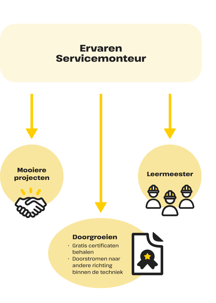 Sta niet stil in je vak. Haal specialistische certificaten (o.a. warmtepompen), groei door naar een nieuwe functie of deel je kennis als Leermeester.